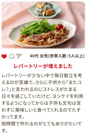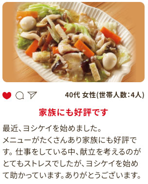 実際に「ヨシケイ ミールキット」を利用している方の感想も見てみましょう。