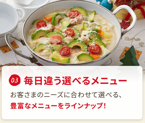 これにより食材を管理したり献立を考えたりすることなく、少しの手間で毎日出来立てでおいしい料理が食べられます。